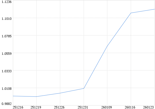 最近净值 1-23日: 1.1123 1-16日: 1.1074 1-09日: 1.0645 2-31日: 1.0100 2-26日: 1.0040