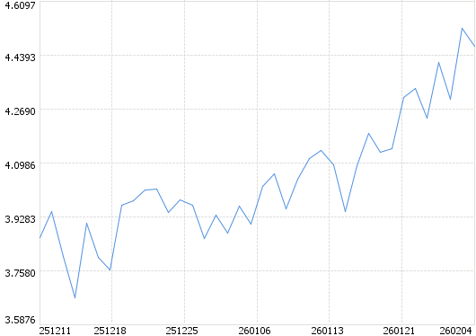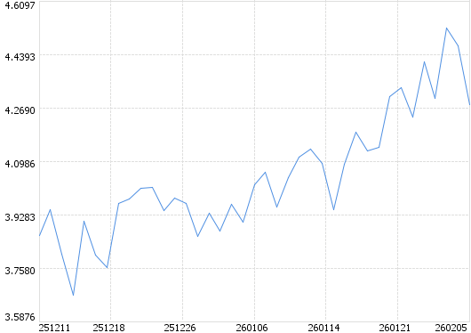 最近净值 2-05日: 4.2801 2-04日: 4.4668 2-03日: 4.5245 2-02日: 4.2988 1-30日: 4.4139